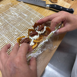 사과 배추 겉절이, 담백한 뼈없는 들깨 삼계탕, 와인과도 잘 어울리는 마스카포네 크림 곶감말이로 모던한 한식손님상을 배웠다.